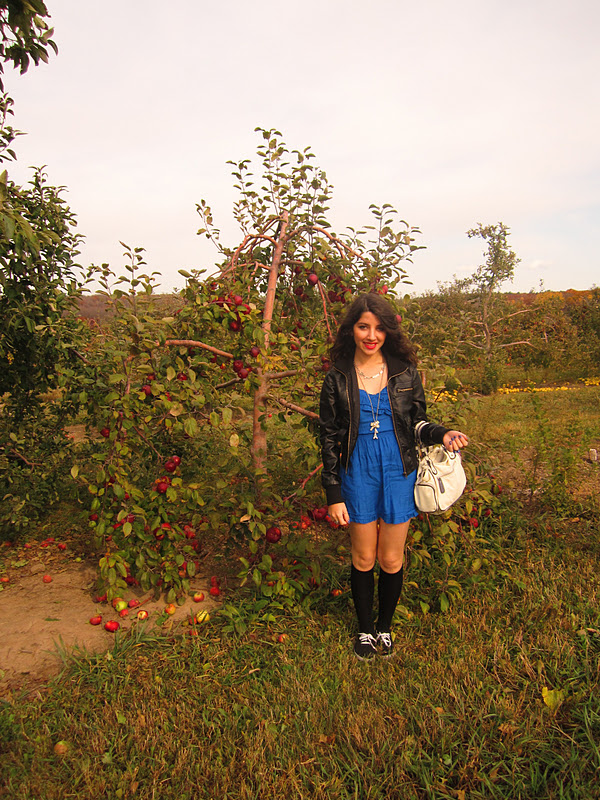 Sexta Feira sem aula, nada como dormir até mais tarde <3 Vi que faziam 14°c, pensei: "oba, ta quente hoje, vou usar um vestido." Pra você ter noção da minha situação climática. Meus amigos vieram me buscar as 11:30am e partimos para o"Ski-Hi". É um lugar onde tem uma plantação de maçãs e uma loja com produtos de mesma. bã. As arvores não estão na sua melhor época, então as frutas estavam pequenas e meio estragadas.. Mas deu pra tirar umas fotos legais (: