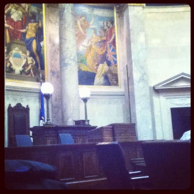 Eles ficam aqui por três semana, durante esse periodo a escola leva eles para fazerem passeios turisticos. Os outros intercambistas - no caso eu e mais quatro - tambem podem ir. Mas para isso teria que perder aula, então só selecionei alguns passeios. Um deles foi ir para Madison, conhecer o tribunal, visitar um museu e fazer compras.